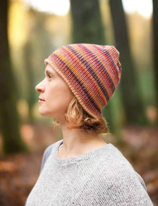 Autumn Rainbow Striped Beanie Hat – Handmade Merino & Wool Blend