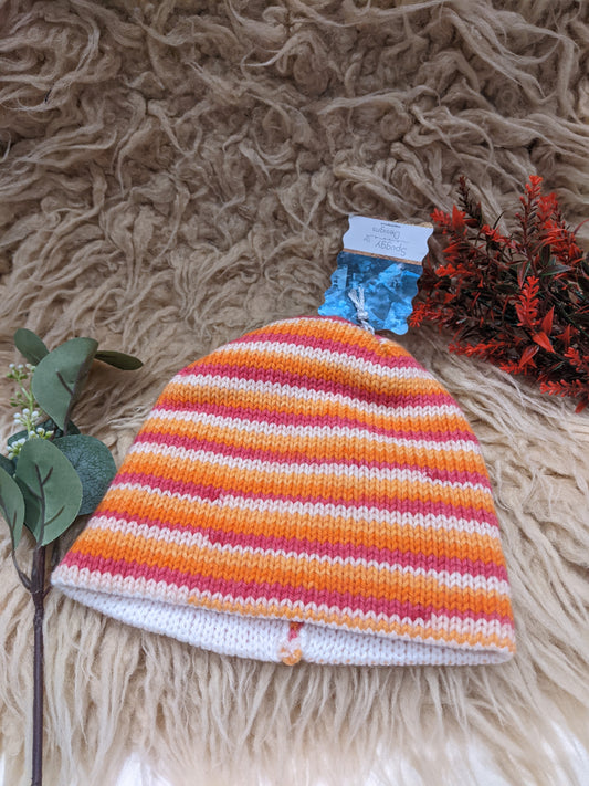 Baby Bold Stripe Merino Beanie Hat - Lilac & Pink