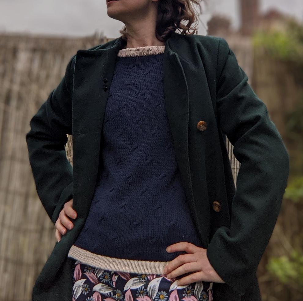 Front has "Cabled Kisses" pattern, back is a plain stitch.