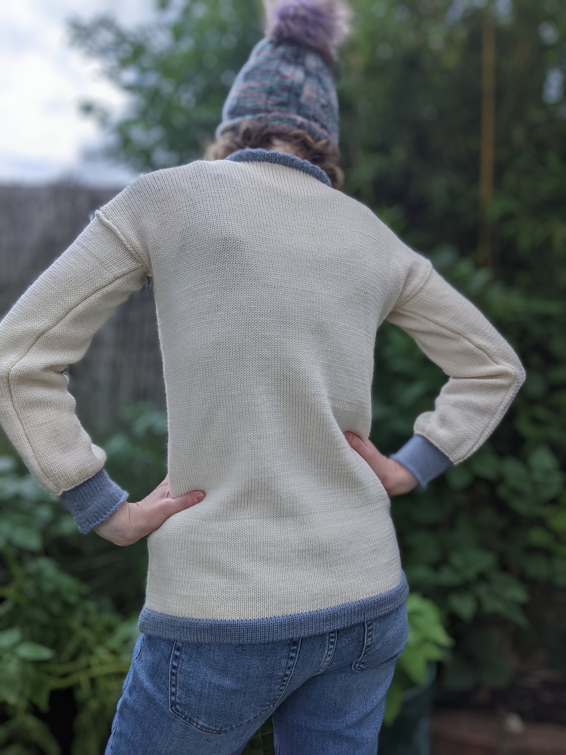 Note: the back of the jumper is plain cream and does not have the pattern.