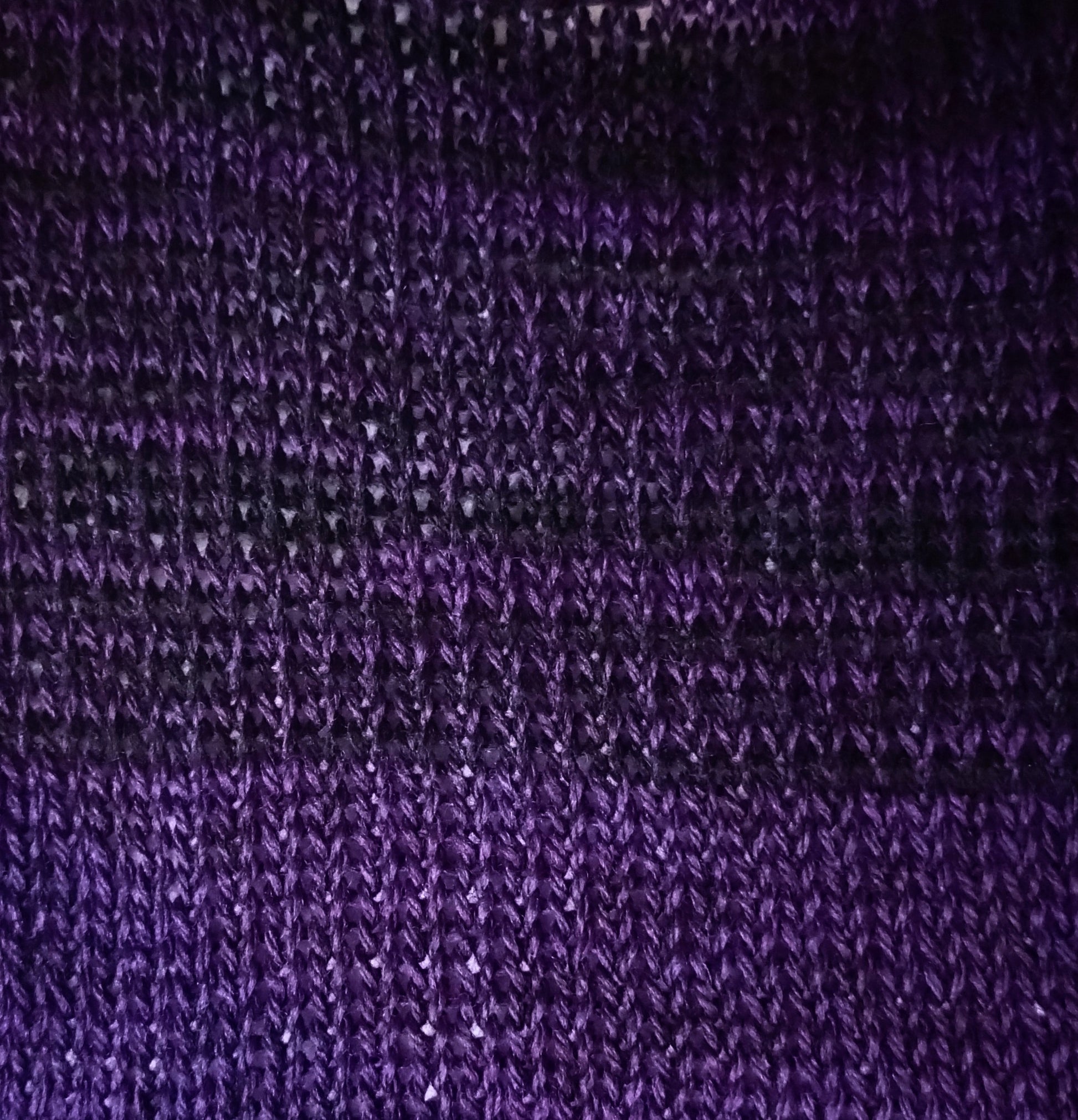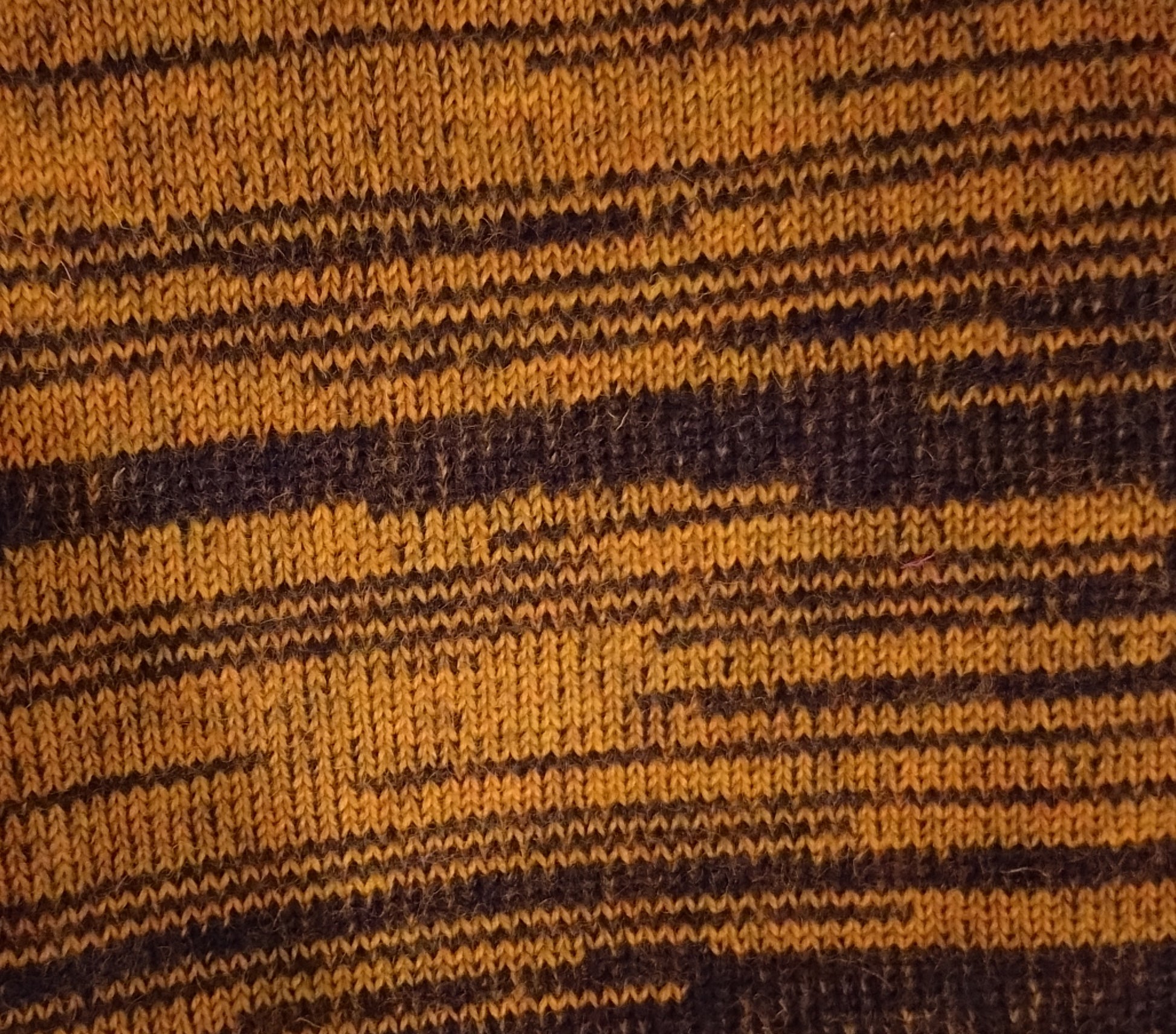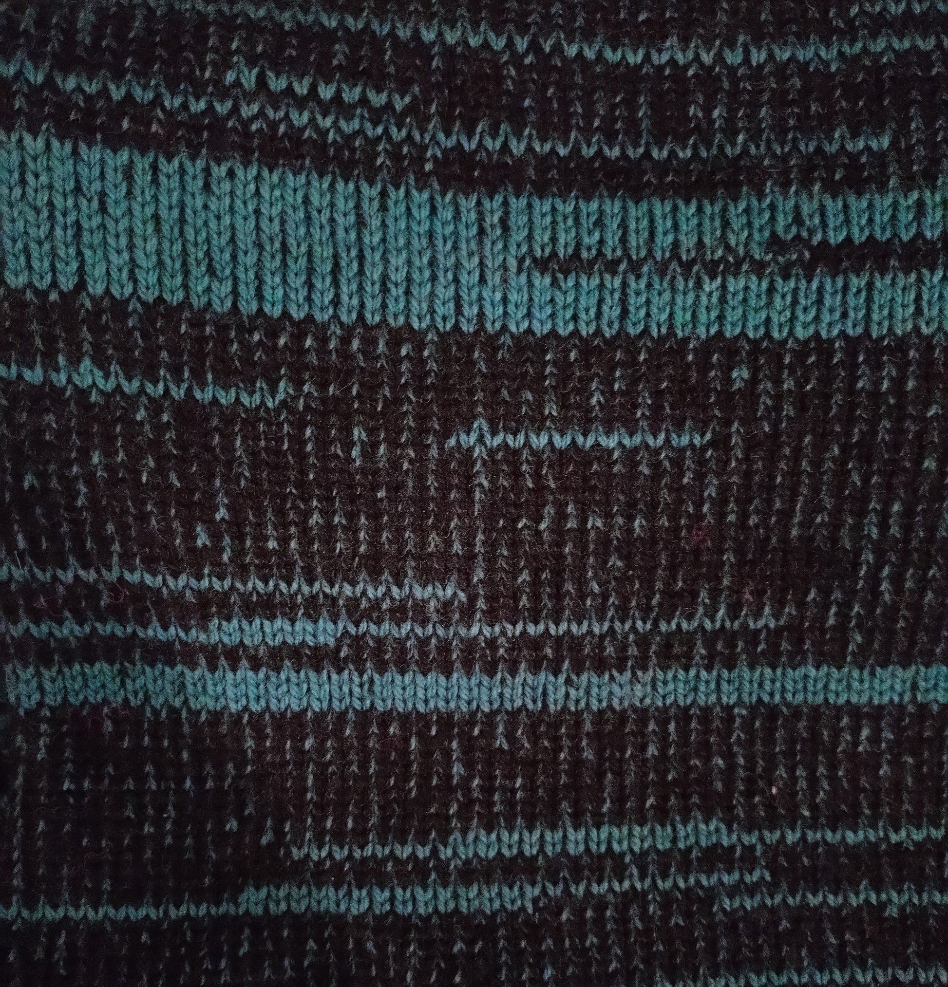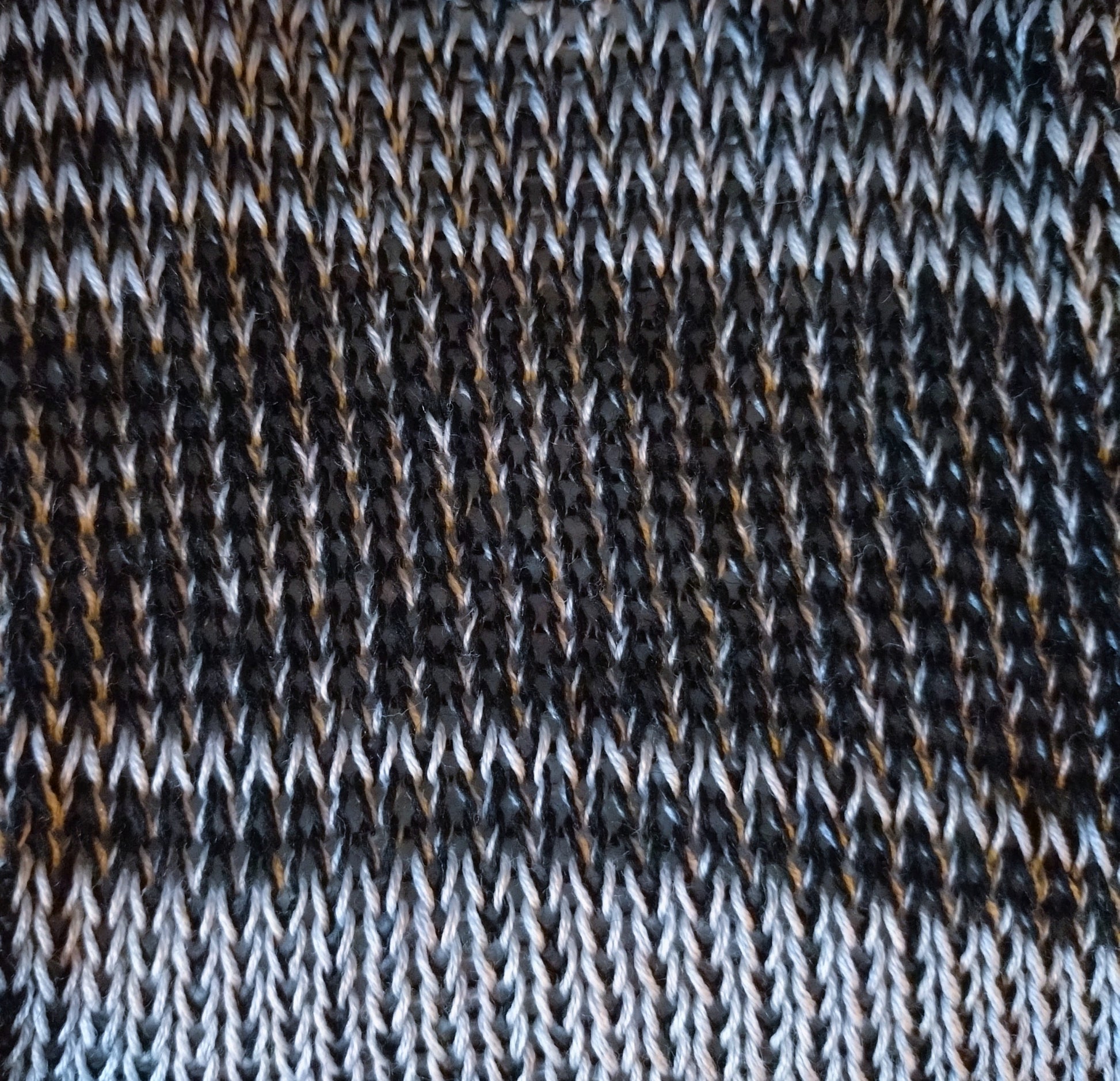 The colour swatches shown are knitted in the main colour plus the black yarn.