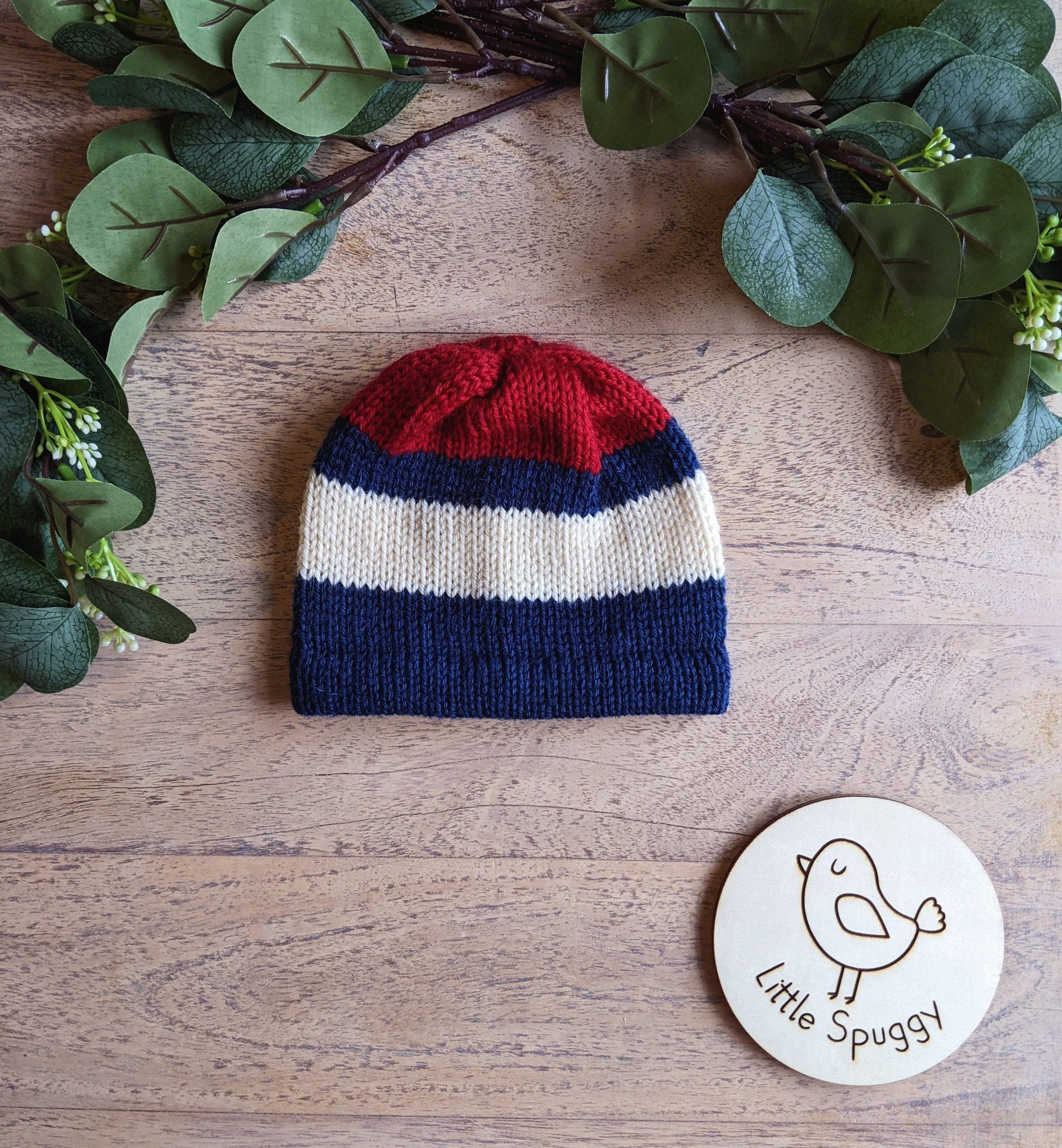 Baby Bold Stripe Merino Beanie Hat - Navy/Red