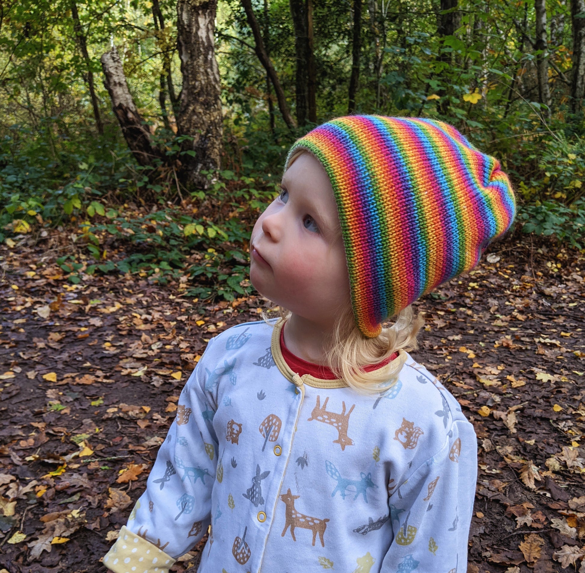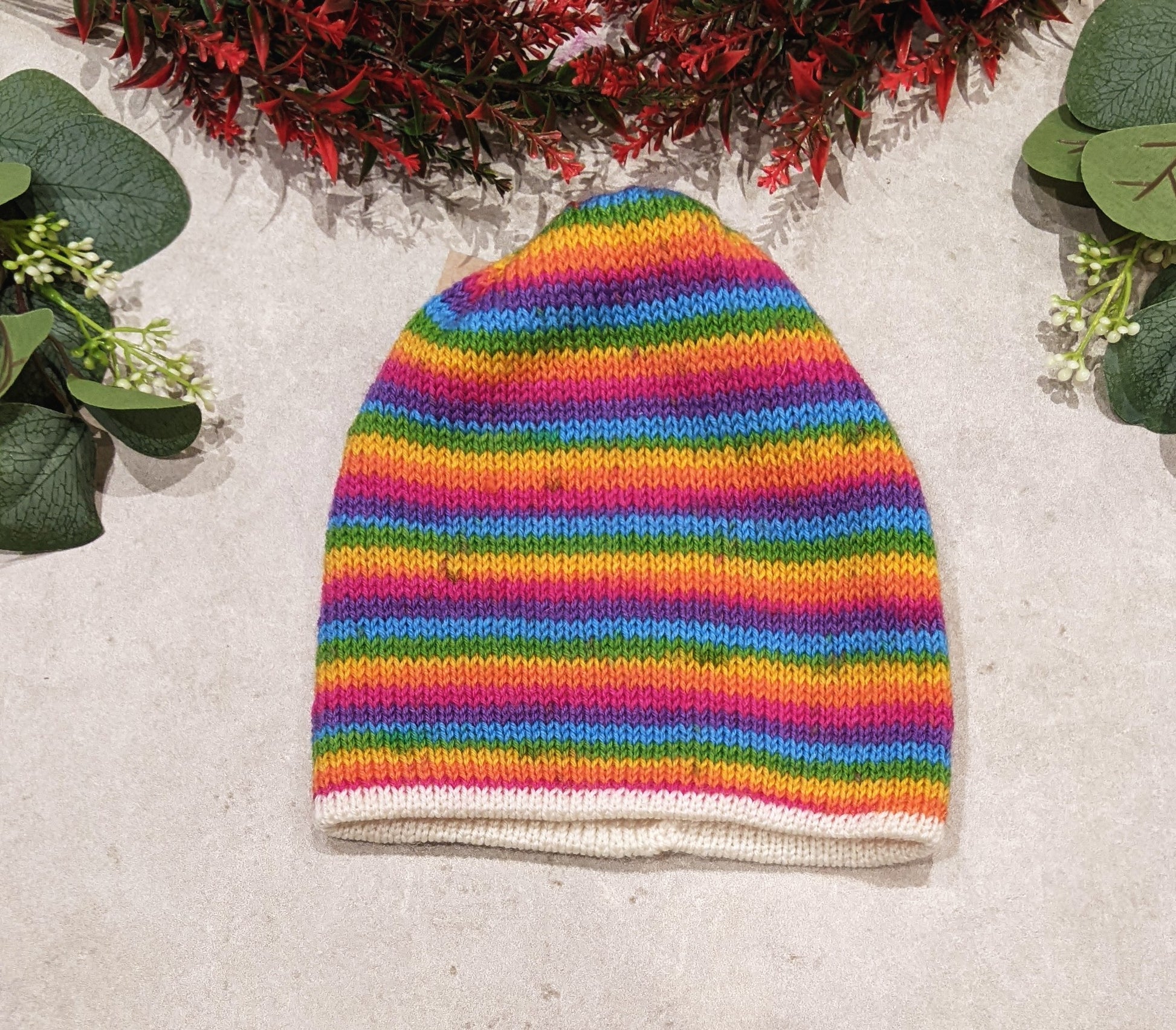 Double layered with a soft merino wool lining, which is soft against your child's skin. The colourful outer yarn is a wool and nylon blend, created to be hard-wearing (perfect for toddlers and kids!).
