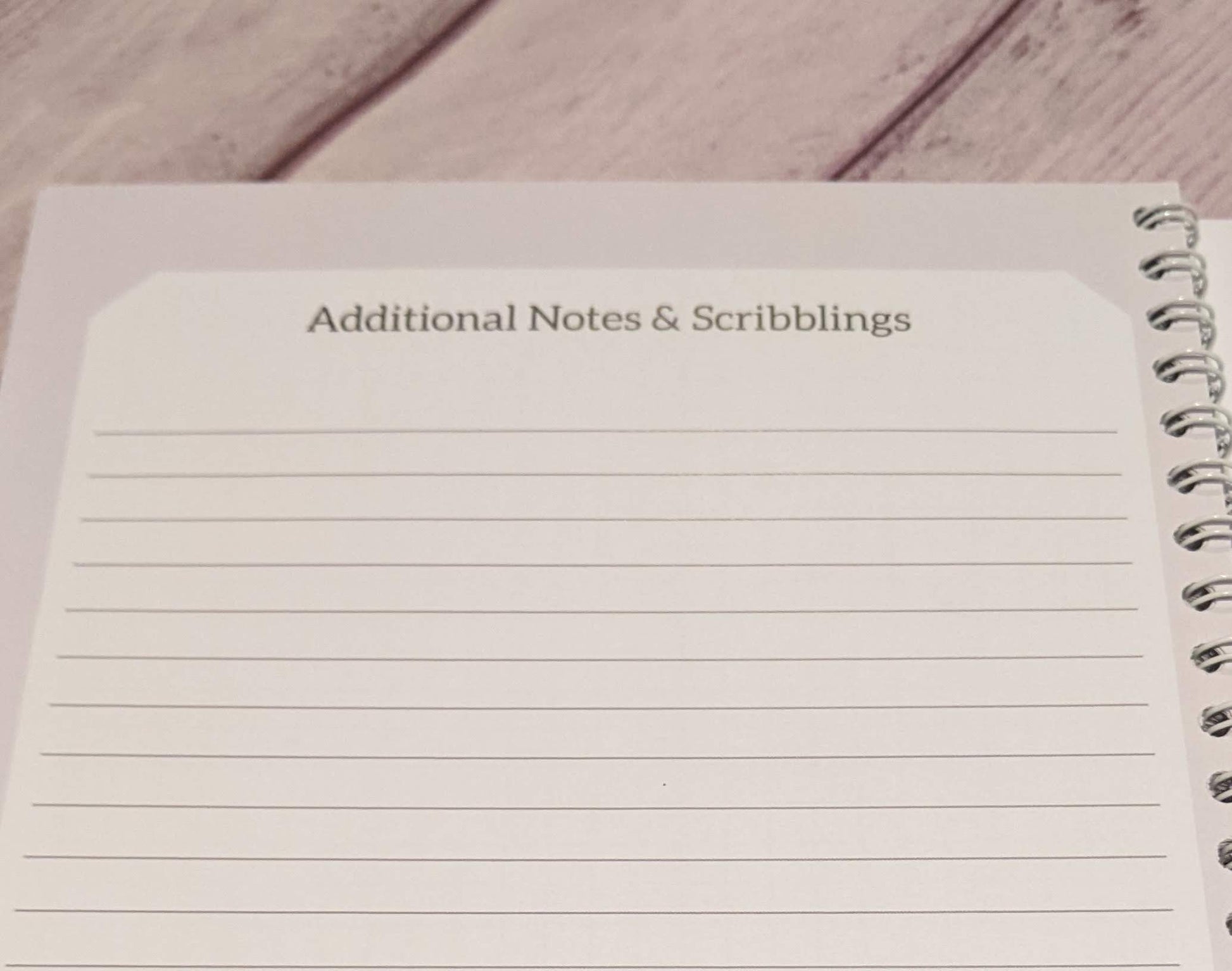 * 'Pattern notes' pages for up to 12 patterns - which include areas for capturing needle, tension, yarn and finish item size options information.