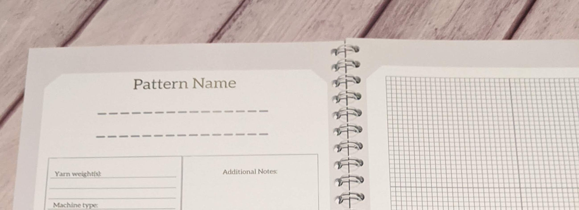 * 'Pattern notes' pages for up to 12 patterns - which include areas for capturing needle, tension, yarn and finish item size options information.